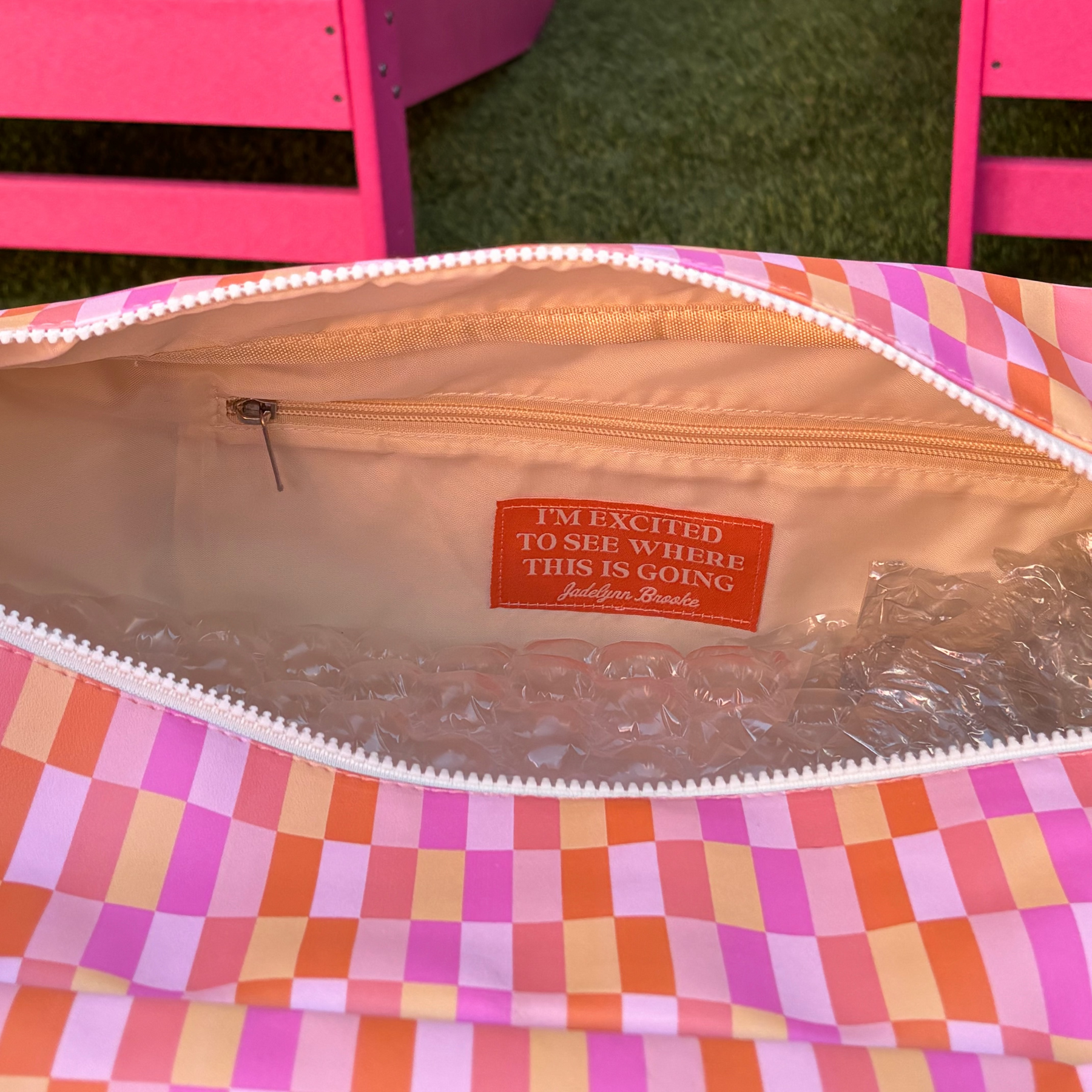 Inspired by the warm glow and playful spirit of Sedona, this custom duffle brings sunset hues and standout style wherever you go. Designed for weekends away, sleepovers, and everyday adventures, this carry-on approved duffle pairs a roomy interior with a front zip pocket for easy organization.