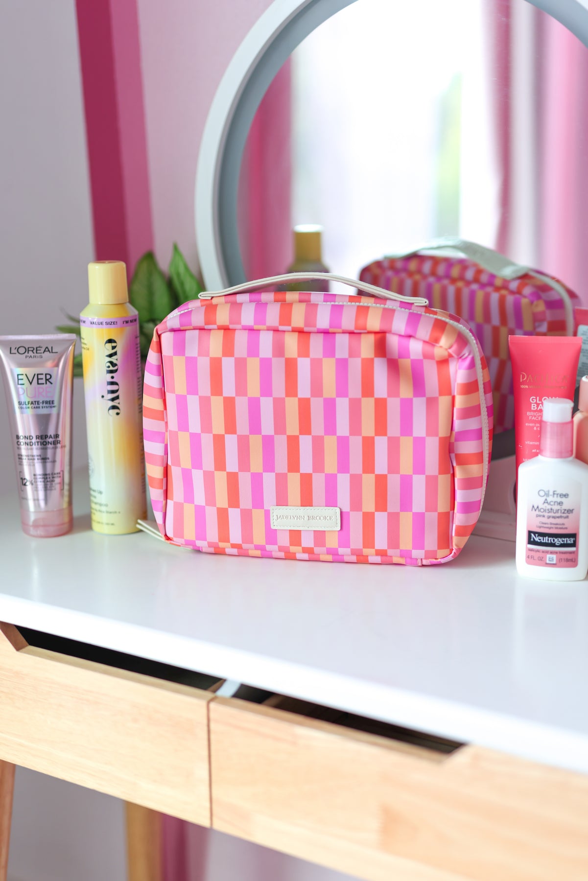 suitcase, travel, College, High school, vacation, adventure, travel, friends, overnight luggage, sleepover, girls, gift, makeup, lotion, cosmetic, shampoo, soap, organizer, custom, personalization, gingham