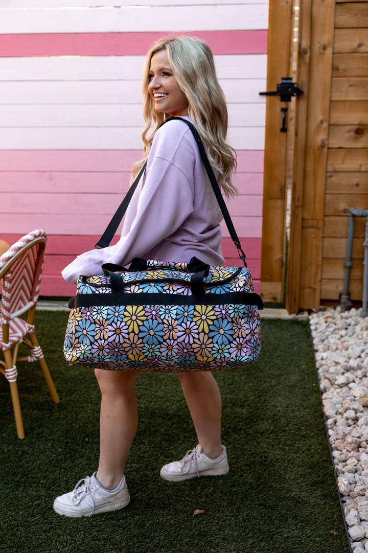 Bag, duffle, suitcase, travel, college, High School, Dorm, vacation, Trip, Airplane, Vacation, Overnight bag, Tote, Luggage, Sleepover, Girls Trip, flowers, flower