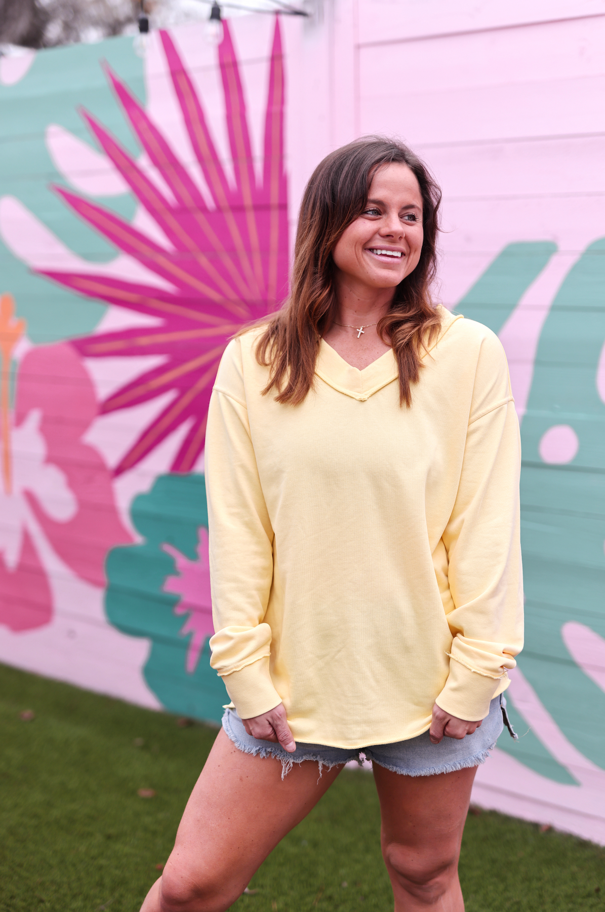 Our Terry V-neck Pullovers feel like a warm hug you can wear!  Made with a comfortable and lightweight Terry fabric, it's perfect for all day coziness.  Pair with leggings or dress up for a cozy and chic style!