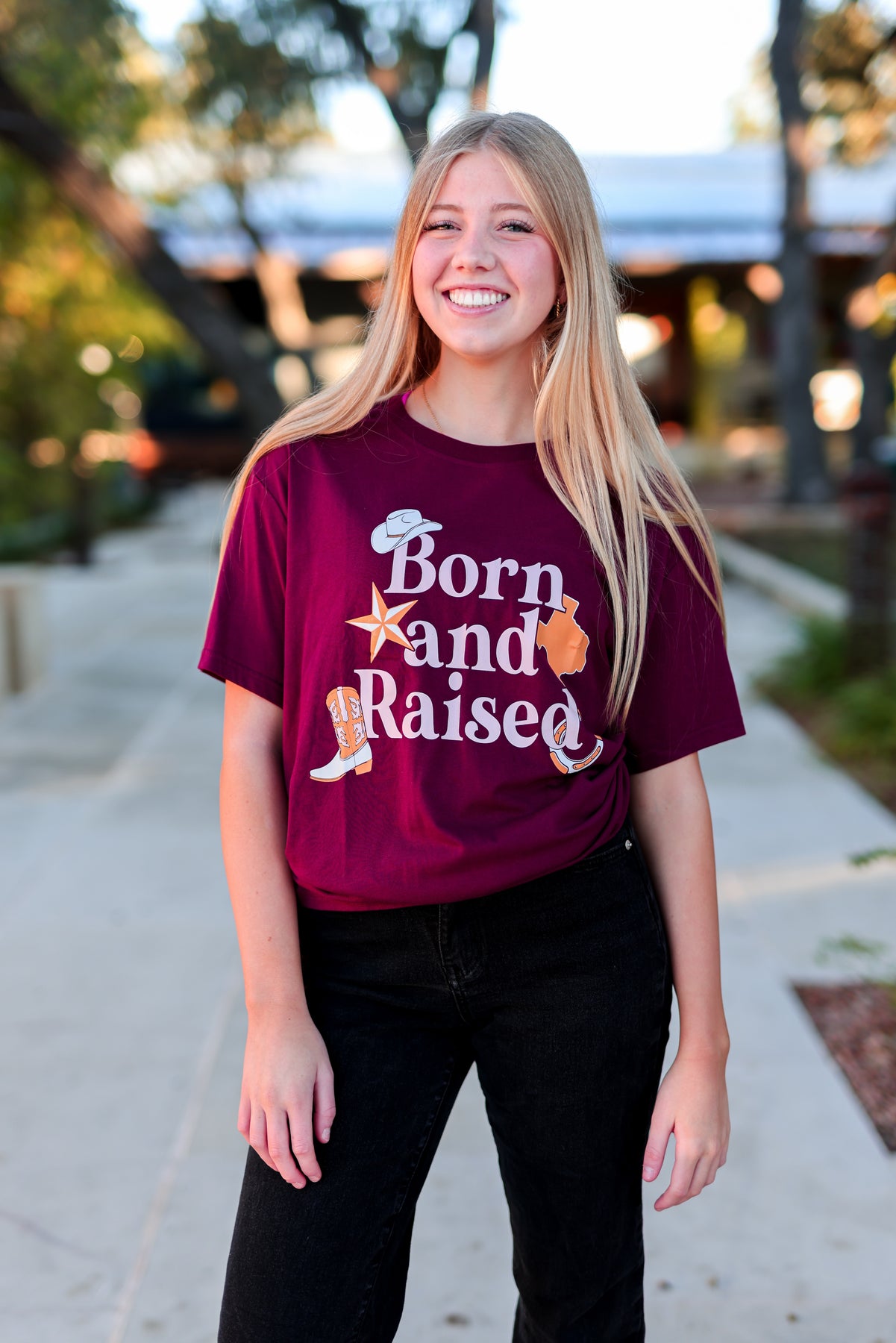 Show off your Lone Star State pride with our 'Born And Raised' short sleeve tee. This easy-to-style graphic is perfect for your customers who love bold, fun, and state-proud fashion.