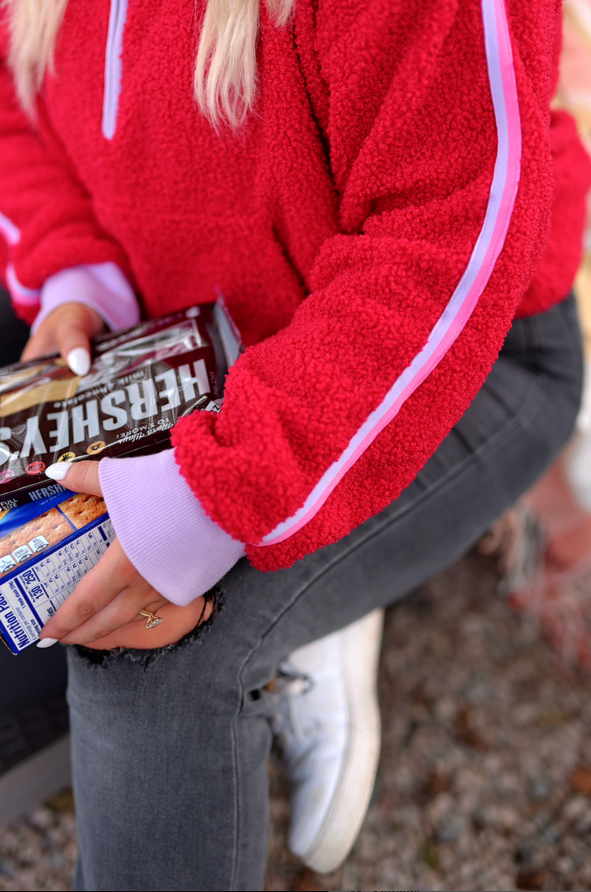 Around The Clock Teddy Quarter Zip Pullover (Cherry Red)