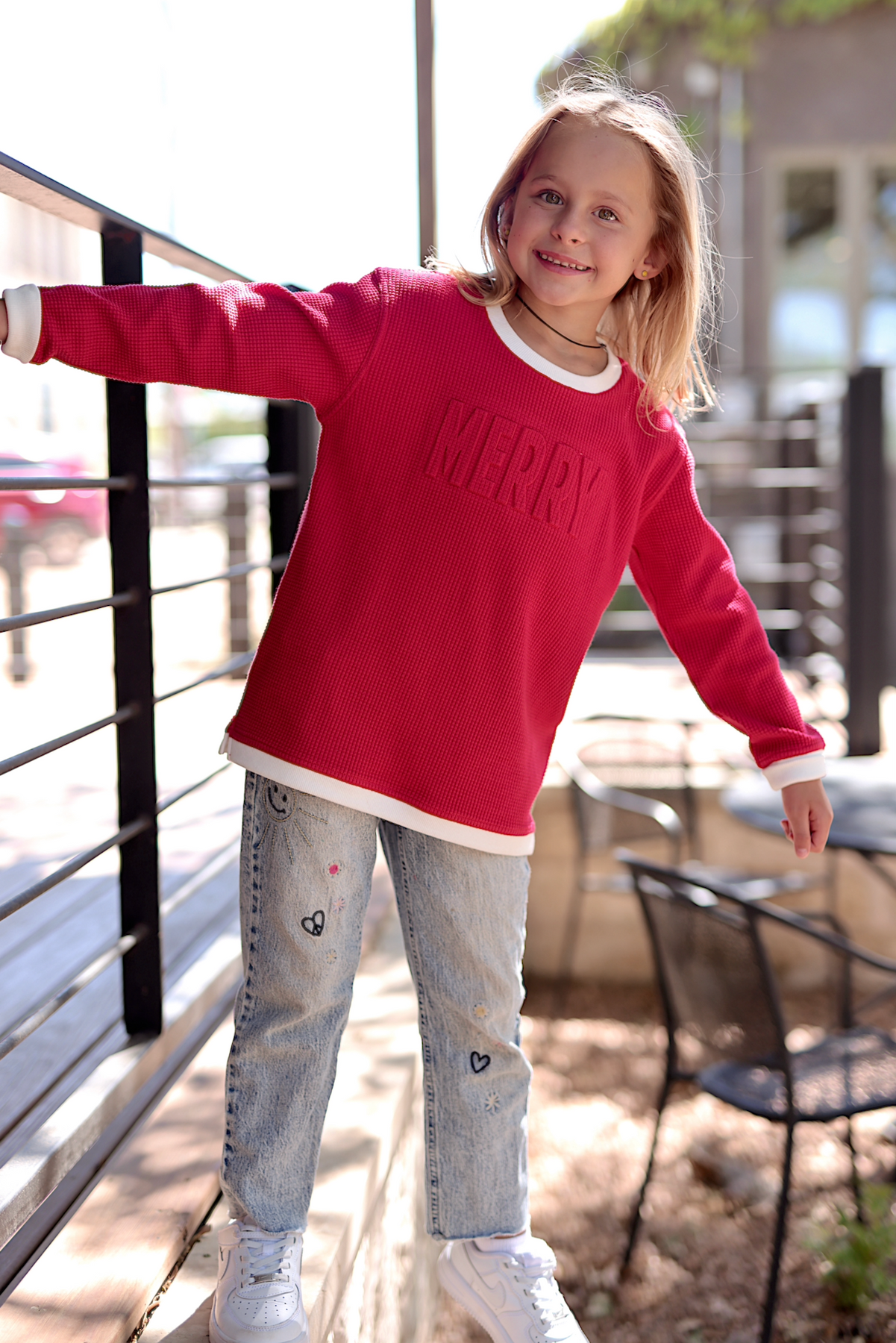 MERRY - Effortless Embossed YOUTH Waffle Pullover (Red/Cream)