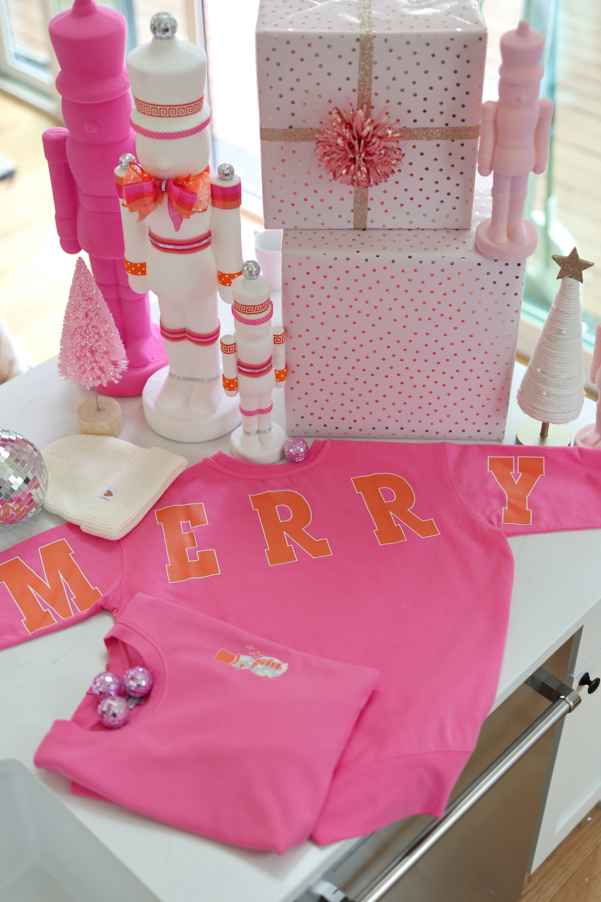 GET READY FOR THE MOST UNIQUE SOFTEST FLEECE PULLOVER FOR THE SEASON. WE SPENT A LOT OF TIME DESIGNING THE PERFECT DISCO SNOWMAN & THE CUTEST BACK PRINT *"MERRY"* ACROSS THE ARMS. SUPER CUTE & COMFY TO WEAR!