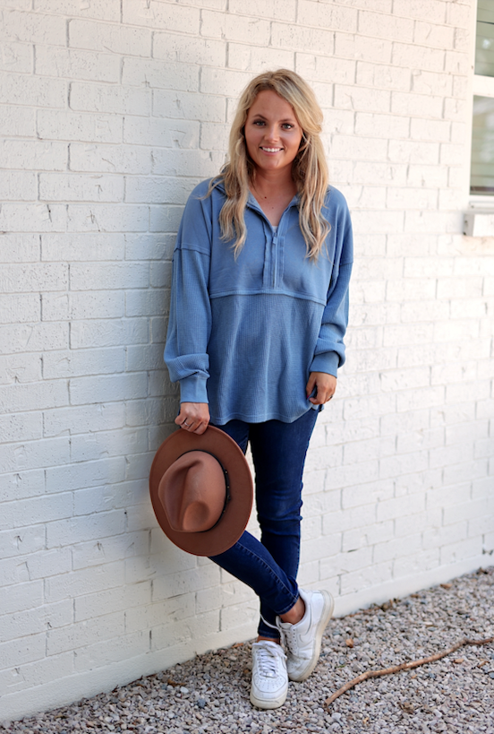 Ready Or Not Waffle Quarter Zip Pullover - (Cobalt)
