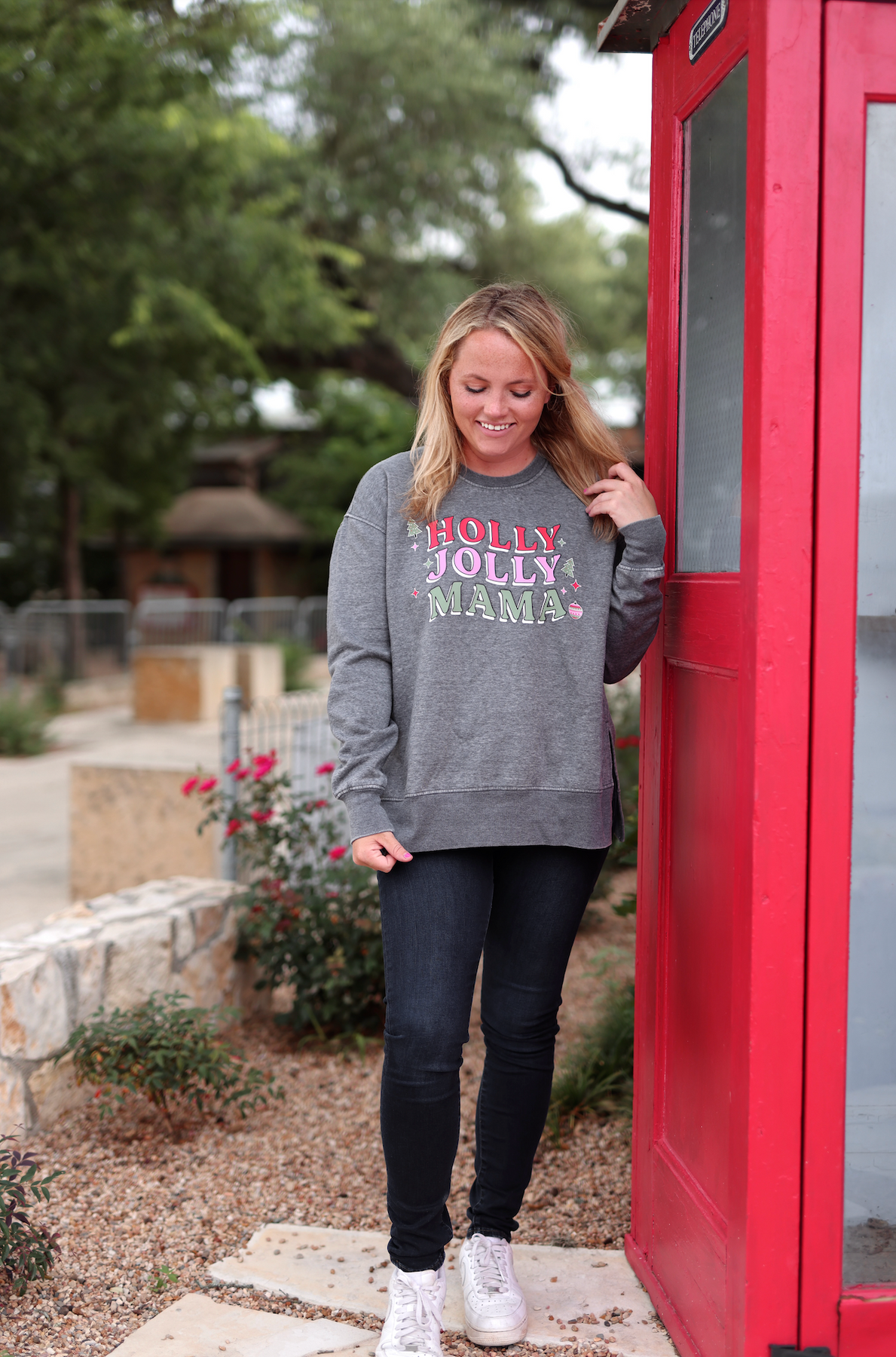 Holly Jolly Mama Burnout Sweatshirt - (Charcoal)